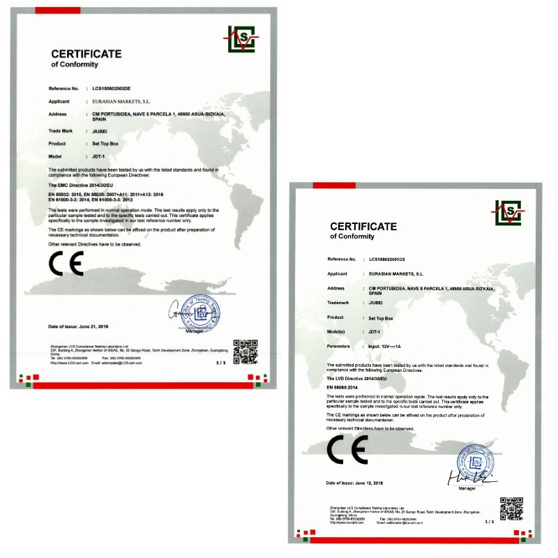 All our products are CE certified and have laboratory tests passed.